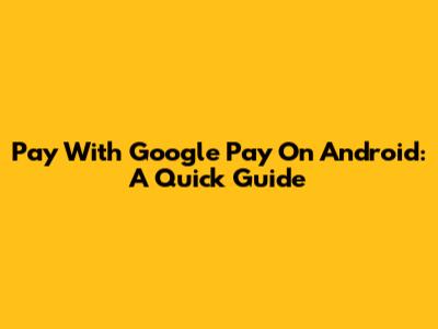 Pay With Google Pay On Android: A Quick Guide