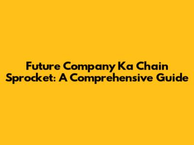 Future Company Ka Chain Sprocket: A Comprehensive Guide
