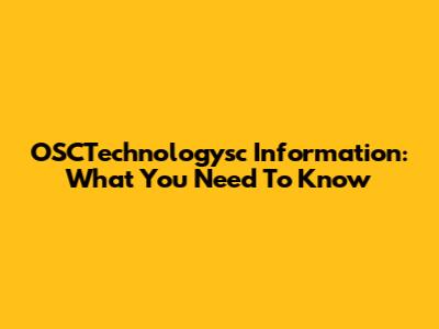 OSCTechnologysc Information: What You Need To Know