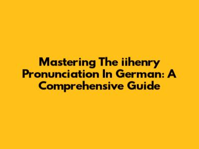 Mastering The 'iihenry' Pronunciation In German: A Comprehensive Guide