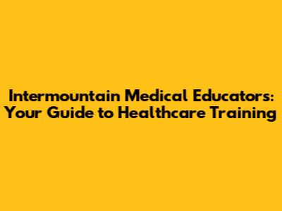 Hey everyone! Are you a medical professional looking to level up your skills? Or maybe you're just starting out in healthcare and need a solid foundation? Well, you're in the right place! Today, we're diving deep into Intermountain Medical Educators (IME), a fantastic resource for all things healthcare training. We'll explore what they offer, who they're for, and why they're such a big deal in the medical education world. Get ready to learn about courses, certifications, and programs designed to boost your career and make you a healthcare rockstar! Let's get started, shall we?