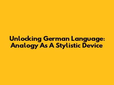 Unlocking German Language: Analogy As A Stylistic Device