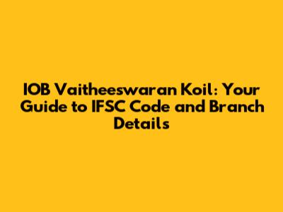 1. Where can I find the IOB Vaitheeswaran Koil branch address? You can usually find the branch address on your bank statements, cheque book, or by using the branch locator on the IOB website. You can also find it through third-party websites when searching for the IFSC code.