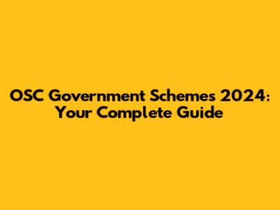 OSC Government Schemes 2024: Your Complete Guide