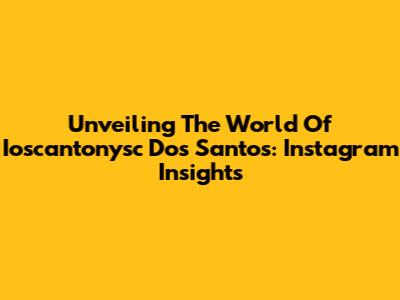 Unveiling The World Of Ioscantonysc Dos Santos: Instagram Insights