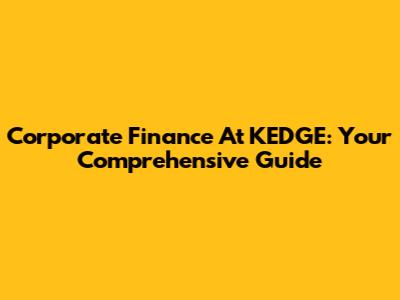 Corporate Finance At KEDGE: Your Comprehensive Guide