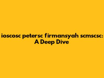 Let's dive deep into the world of ioscosc petersc firmansyah scmscsc! This term might seem like a jumble of letters at first glance, but we're going to break it down and explore what it could possibly mean. Whether it's a new technology, a unique identifier, or even a person's name, we'll try to unravel its mystery. So, buckle up, guys, and let's embark on this journey of discovery together!