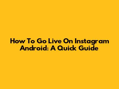 How To Go Live On Instagram Android: A Quick Guide