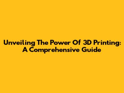 Unveiling The Power Of 3D Printing: A Comprehensive Guide