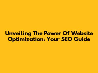 Unveiling The Power Of Website Optimization: Your SEO Guide