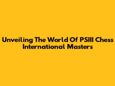Unveiling The World Of PSIII Chess International Masters