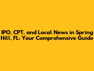 Hey everyone! Spring Hill, Florida, is a buzzing place, and if you're like me, you love staying in the know. Today, we're diving deep into some key topics that matter to us locals: IPOs, the world of CPT (Current Procedural Terminology) codes, and, of course, the latest happenings around Spring Hill. Get ready for a deep dive, because we're going to cover everything from business to healthcare, to what's happening on the streets. So, grab a coffee, sit back, and let's get started. We'll break down each topic, making sure you understand the ins and outs, regardless of whether you're a seasoned pro or just curious. This is your one-stop guide to staying informed about the topics that shape our community.