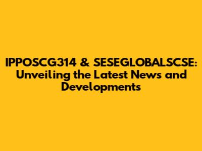Hey everyone! Let's dive into the exciting world of IPPOSCG314 and SESEGLOBALSCSE, exploring the latest news, updates, and what it all means for you. In this article, we'll break down everything you need to know, from the recent developments to the future prospects of these key players in the industry. We'll keep it casual, informative, and, hopefully, a little bit fun along the way. Get ready for a deep dive into the nitty-gritty, so you can stay informed and maybe even impress your friends with your newfound knowledge!