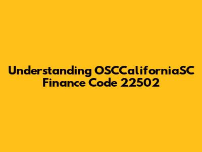Understanding OSCCaliforniaSC Finance Code 22502