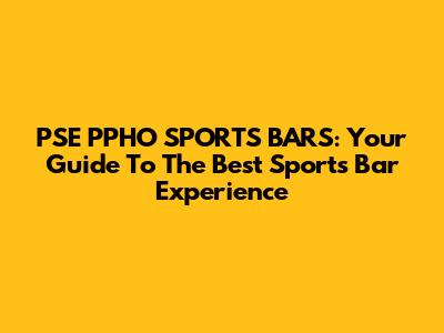 PSE PPHO SPORTS BARS: Your Guide To The Best Sports Bar Experience