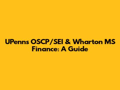 UPenn's OSCP/SEI & Wharton MS Finance: A Guide