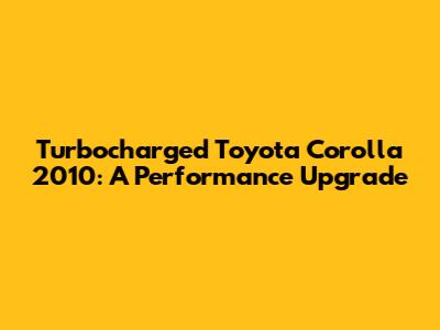 Turbocharged Toyota Corolla 2010: A Performance Upgrade