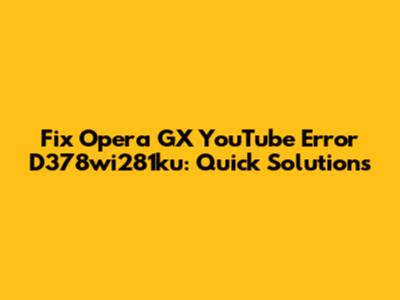 Fix Opera GX YouTube Error D378wi281ku: Quick Solutions