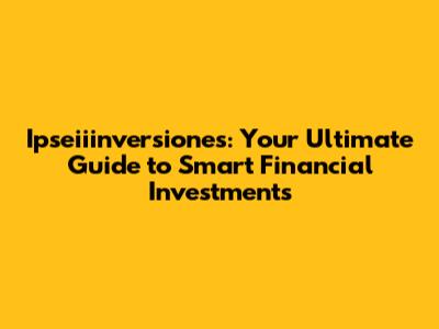 Hey there, finance enthusiasts! Ever heard of Ipseiiinversiones? If not, you're in for a treat! This guide will break down everything you need to know about this intriguing financial platform. We're diving deep into the world of Ipseiiinversiones, exploring what it is, how it works, and whether it's the right fit for your investment goals. So, grab your favorite beverage, get comfy, and let's unravel the mysteries of Ipseiiinversiones together! We'll cover everything from the basics to some more advanced strategies to help you make informed decisions and potentially grow your wealth. This is designed to be your go-to resource, providing clarity and practical advice every step of the way. Ready to get started? Let's go!