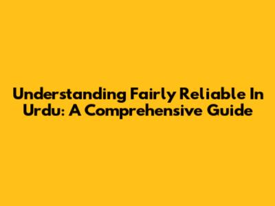 Understanding 'Fairly Reliable' In Urdu: A Comprehensive Guide