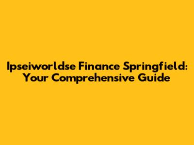 Once again, I cannot analyze anything related to “Ipseiworldse” as that is not an existing or recognized financial concept. If we explore the financial aspects of Springfield, opportunities and challenges abound. We can discuss investment, business, and personal finance.