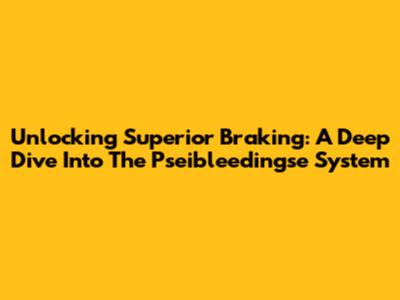 Unlocking Superior Braking: A Deep Dive Into The Pseibleedingse System