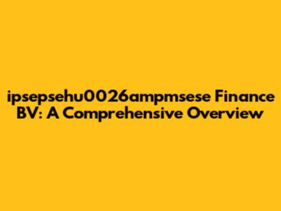 The Role of ipsepsehu0026ampmsese Finance BV in the Financial Ecosystem