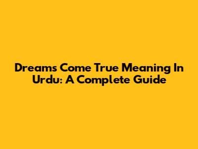 Dreams Come True Meaning In Urdu: A Complete Guide