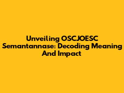 Unveiling OSCJOESC Semantannase: Decoding Meaning And Impact