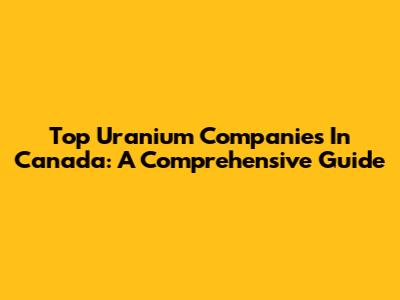 Top Uranium Companies In Canada: A Comprehensive Guide
