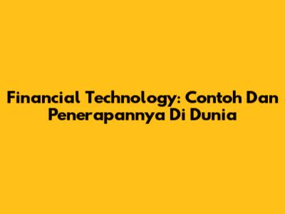 Financial Technology: Contoh Dan Penerapannya Di Dunia