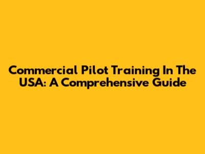 Commercial Pilot Training In The USA: A Comprehensive Guide