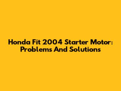 Honda Fit 2004 Starter Motor: Problems And Solutions
