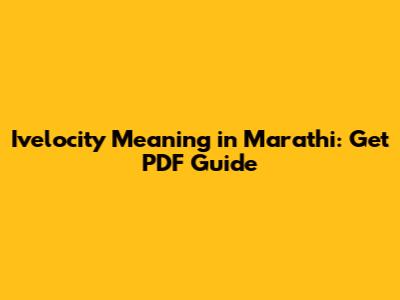 To create a helpful PDF guide on "ivelocity" and its meaning in Marathi, consider the following structure: