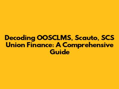 Decoding OOSCLMS, Scauto, SCS Union Finance: A Comprehensive Guide