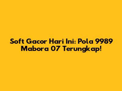 Soft Gacor Hari Ini: Pola 9989 Mabora 07 Terungkap!