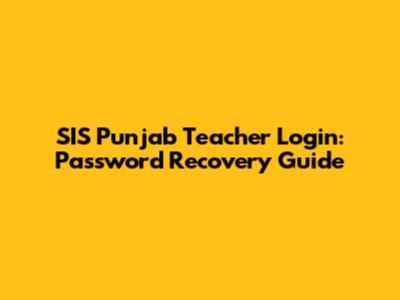 SIS Punjab Teacher Login: Password Recovery Guide