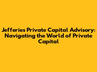 Hey guys! Ever wondered how companies raise money outside of the public stock market? That's where private capital advisory comes in, and Jefferies is a big player in this field. Let's dive into what Jefferies Private Capital Advisory does, why it matters, and what makes them a key player in the world of finance. This article aims to provide a comprehensive overview for those looking to understand this intricate part of the financial world.