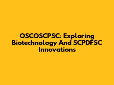 OSCOSCPSC: Exploring Biotechnology And SCPDFSC Innovations