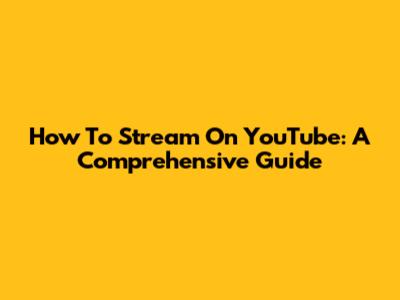 How To Stream On YouTube: A Comprehensive Guide