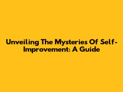 Unveiling The Mysteries Of Self-Improvement: A Guide