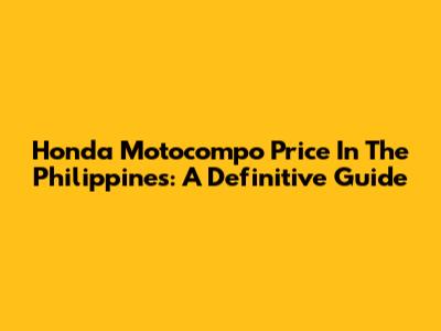 Honda Motocompo Price In The Philippines: A Definitive Guide