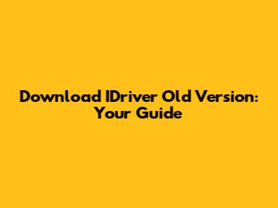 Download IDriver Old Version: Your Guide