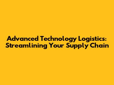 Advanced Technology Logistics: Streamlining Your Supply Chain
