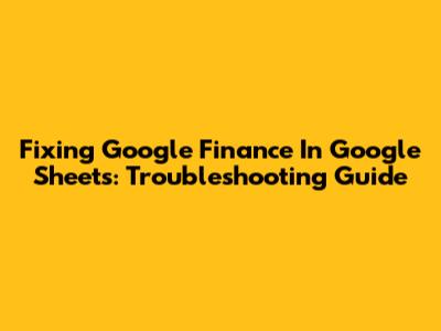 Fixing Google Finance In Google Sheets: Troubleshooting Guide