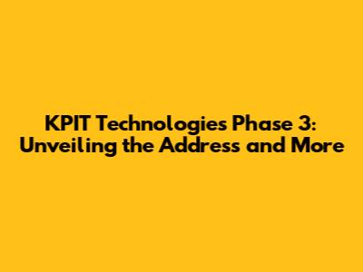 Unveiling the KPIT Technologies Phase 3 Address: Where to Find Them