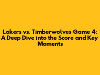 Alright, basketball fans, let's break down the epic clash between the Los Angeles Lakers and the Minnesota Timberwolves in Game 4! You're probably here because you're itching to know the final score, but trust me, there's so much more to unpack than just the numbers. We're talking about pivotal moments, stellar performances, and the overall impact on the series. So, buckle up, because we're about to dive deep into the heart of this matchup. This game was a rollercoaster of emotions, with lead changes, clutch shots, and nail-biting finishes. Each possession felt crucial, and the intensity on the court was palpable. The stakes were high, as both teams were vying for a critical win to gain an advantage in the series. The energy in the arena was electric, with fans on the edge of their seats, cheering for every basket and defensive stop. This game wasn't just about the score; it was a testament to the skill, determination, and teamwork of both the Lakers and the Timberwolves. It was a battle of wills, with each team fighting tooth and nail for every inch of the court. The players left everything they had on the floor, showcasing their athleticism and basketball IQ. The coaches made strategic adjustments, trying to outmaneuver their opponents and gain a tactical edge. This game was a showcase of the best that basketball has to offer, with highlight-reel plays and unforgettable moments. The outcome of Game 4 would have significant implications for the rest of the series, setting the stage for a dramatic showdown. The game was filled with suspense, with the lead changing hands multiple times, keeping fans guessing until the final buzzer. The tension in the arena was so thick you could cut it with a knife, as every possession brought the game closer to its climax. This game was more than just a contest; it was a display of passion, dedication, and the relentless pursuit of victory. The players poured their hearts and souls into every play, making this game an unforgettable experience for everyone involved. The legacy of Game 4 would be etched in the annals of basketball history, remembered for its unforgettable moments and the impact it had on the series. Game 4 will be remembered as a classic game that showcased the best of the sport, and it will be replayed and analyzed for years to come. The rivalry between the Lakers and Timberwolves was further ignited by this game, adding fuel to the fire and setting the stage for a thrilling series.