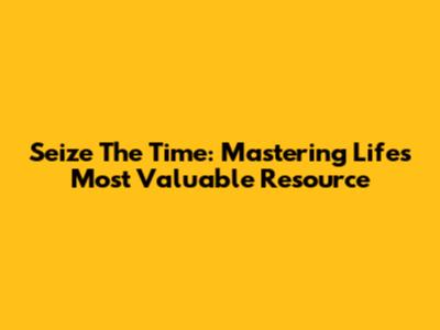 Seize The Time: Mastering Life's Most Valuable Resource