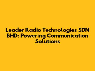 Hey everyone, let's dive into the world of Leader Radio Technologies SDN BHD! They're a big player in the radio communication game, offering a ton of solutions for various industries. If you're looking for reliable and cutting-edge communication tech, you've come to the right place. In this article, we'll explore what Leader Radio Technologies does, their services, and why they're a go-to choice for many. Buckle up, because we're about to explore the ins and outs of this tech powerhouse! Their expertise spans across several areas, ensuring they can meet the diverse needs of their clients. From designing and implementing complex communication networks to providing ongoing support and maintenance, Leader Radio Technologies is committed to delivering top-notch solutions. They understand the critical importance of clear and reliable communication in today's fast-paced world. This commitment has made them a trusted partner for businesses and organizations across various sectors. The company's focus on innovation and customer satisfaction sets them apart in the industry. They continuously invest in research and development to stay ahead of the curve, offering the latest advancements in radio communication technology. Their dedication to excellence is evident in every project they undertake, ensuring that clients receive the best possible solutions. They take pride in their ability to provide tailored services that meet the specific requirements of each client. Whether it's a small business or a large enterprise, Leader Radio Technologies has the expertise and resources to deliver. Their team of experienced professionals works closely with clients to understand their needs and develop customized solutions. This collaborative approach ensures that the implemented solutions are effective and aligned with the client's goals. Leader Radio Technologies' commitment to quality and customer satisfaction is unparalleled. They are dedicated to delivering reliable and efficient communication solutions, helping their clients stay connected and productive.