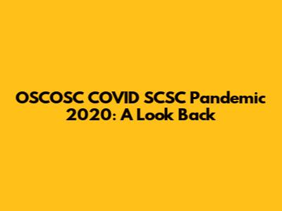 OSCOSC COVID SCSC Pandemic 2020: A Look Back
